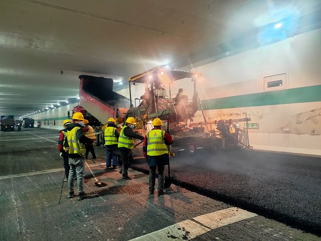 G312快速路項目施工現場,工人們緊張有序調度各項設施設備安裝,加班加點完成道路護欄和路燈的安裝工作,精確完成路面每一節標線的劃定。寒冬低溫下,工人們始終堅守在一線默默付出,全力沖刺年度生產目標。
