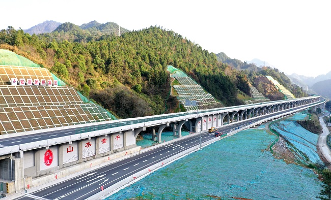 作為安徽省高速建設首次采用PPP試點模式項目之一,黃千高速是G4012溧陽至寧德國家高速公路網的重要組成部分,是縱貫江蘇、安徽、浙江、福建四省的重要交通通道。黃千高速安徽段全長25.54公里,路基寬25.5米,全線采用四車道高速標準,設計時速80公里/小時,設3處互通立交、1處服務區、2處匝道收費站,13座隧道、1座特大橋、14座大中橋,單公里造價1.87億元及橋隧比82.5%,均創安徽省高速公路之最。