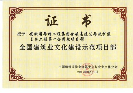 近日,由公司承建的合安高速改擴(kuò)建主體工程第一合同段項(xiàng)目榮獲首批“全國(guó)建筑業(yè)文化建設(shè)示范項(xiàng)目部”稱號(hào)。該獎(jiǎng)項(xiàng)是由中國(guó)建筑業(yè)協(xié)會(huì)、中建協(xié)建筑史志與企業(yè)文化分會(huì)共同評(píng)選頒發(fā),首批共授予55個(gè)項(xiàng)目“全國(guó)建筑業(yè)文化建設(shè)示范項(xiàng)目部”稱號(hào)。
