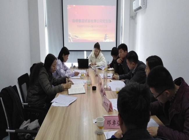 根據(jù)路橋集團(tuán)黨委統(tǒng)一安排,2月28日,檢測公司黨支部召開2017年度專題組織生活會議。會議由檢測公司黨支部書記、董事長卞寶林主持,路橋集團(tuán)黨委委員、總工程師王潔,黨委工作部副主任徐慧玲蒞臨指導(dǎo)。