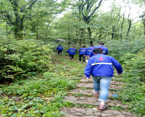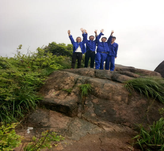 陰雨蒙蒙下山峰更加美麗動人,登山隊伍抖擻精神踏上了蜿蜒曲折的上山之路。一路上,不時響起歡聲笑語,團隊氣氛輕松融洽。在一些陡峭難行的路段,大家互相幫助,你托我扶,處處體現了同事間的關愛和友好的團隊協作精神。登頂后看見整個青陽的美景,不禁產生自豪感,為自己工作在這片土地而驕傲。
