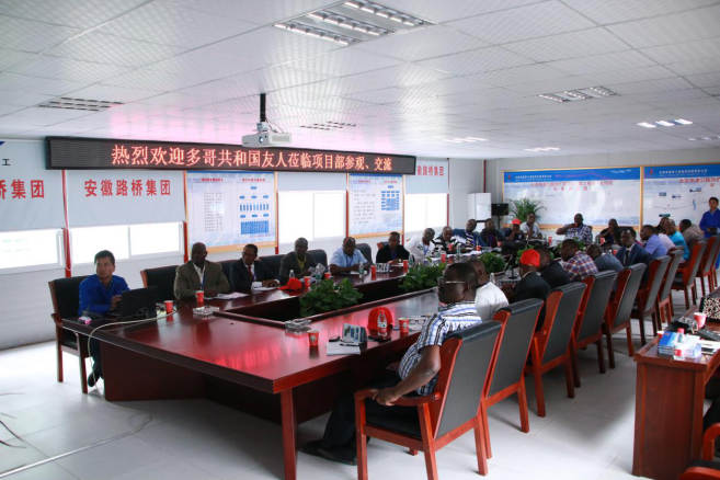 5月3日下午,多哥共和國考察團蒞臨我公司承建的合安高速公路改擴建01標項目經理部參觀、交流。
