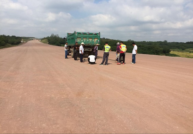 由業(yè)主、總監(jiān)辦、中心實驗室、駐地辦、路面標(biāo)段組成的驗收組,在驗收過程中對交驗段落的路基頂面高程、路基寬度、平整度、橫坡度、壓實度、彎沉等進行了全面檢測,各項技術(shù)指標(biāo)檢測結(jié)果均符合相關(guān)技術(shù)規(guī)范要求,截止目前本項目順利交驗路基共3公里。