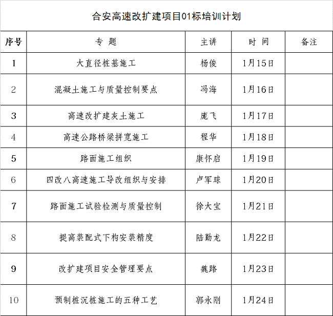 安徽路橋集團合安高速改擴建項目技術(shù)培訓(xùn)班于2018年1月15日正式開班。