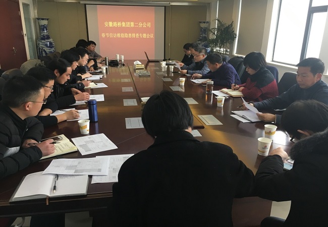 1月20日下午,二分公司在企融國際16 樓會議室召開春節信訪維穩及隱患排查專題會議,二分公司領導班子及所屬各項目負責人、財務負責人共18人參加了此次會議,會議由二分公司總經理、黨總支委員張立兵主持。