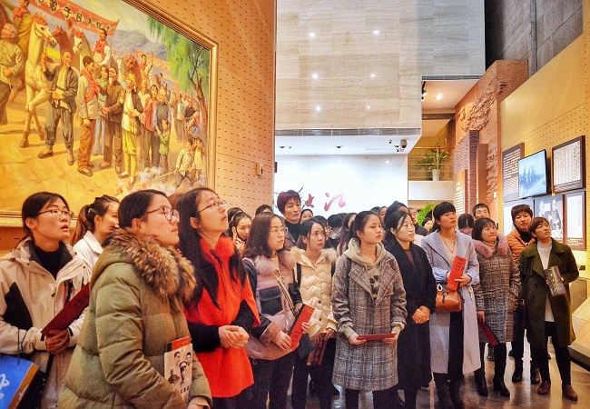 參觀過紀(jì)念館后,女同志們集體觀看了最近熱映的大型記錄片《厲害了,我的國》。該片以習(xí)近平新時代中國特色社會主義思想為內(nèi)在邏輯,展示了在創(chuàng)新、協(xié)調(diào)、綠色、開放和共享的新發(fā)展理念下中國這五年的偉大成就,展現(xiàn)了中國人民在全面建設(shè)小康征程上的偉大奮斗,彰顯了以習(xí)近平同志為核心的黨中央正確領(lǐng)導(dǎo)。