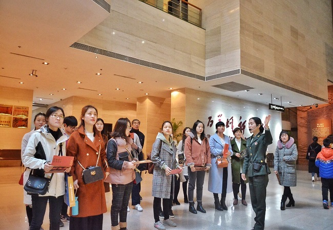 在一件件珍貴的革命文物前,在一個個犧牲英烈的姓名前,在英雄少女馬毛妹雕像前,女同志們不時駐足凝望,敬畏之情在內(nèi)心深處久久激蕩,在巨幅“勝利之師”浮雕下,大家用注目禮深切向革命先烈們致以最崇高的敬意。
