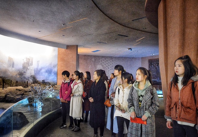 鐘山風(fēng)雨起蒼黃,百萬雄師過大江。渡江紀(jì)念館面向浩瀚巢湖,猶如一艘乘風(fēng)破浪的巨型戰(zhàn)艦。館內(nèi)按展覽的內(nèi)容分為風(fēng)雨蒼黃、天翻地覆、人間正道、勝利之城四部分,以影像、實物、圖片和文字等形式描述了百萬雄師過大江的戰(zhàn)斗場面,同時還展出相當(dāng)多的渡江中的珍貴文物,伴隨著生動的解說,大家真切感受到了解放軍萬船齊發(fā)勇渡長江的英雄氣概和軍民一心的魚水深情。