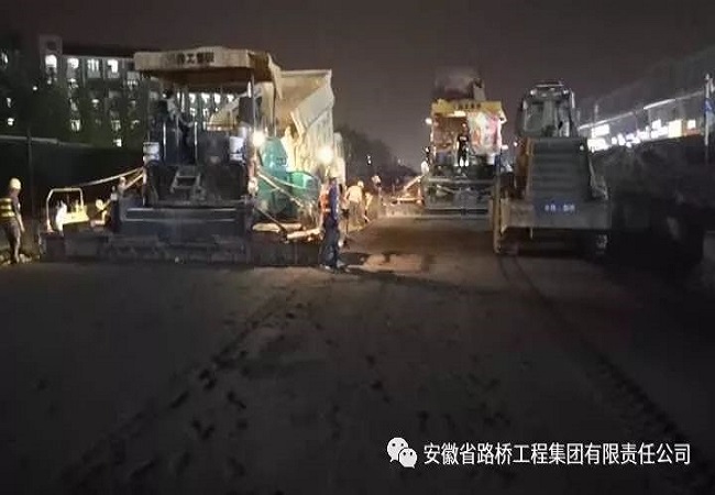 為完成月底九龍路、湯口路主線通車任務 ,項目部結合勞動競賽精心組織施工,掀起大干熱潮。面對節點工期緊、工作任務重等重重困難,五一期間,施工人員快馬加鞭,爭時間、搶進度、工地上白天機械雷鳴,夜晚燈火通明。項目部備齊物資、午餐、晚餐送到現場,送到每位員工手中。目前九龍路東半幅(湯口路-信息學院)瀝青面層攤鋪結束放行交通,換西半幅封閉施工。