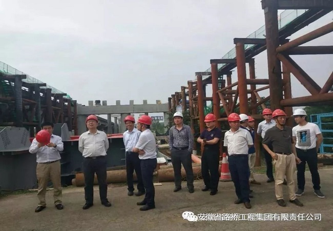 5月24日下午,省交控集團總經理錢東升、建設管理部部長蘇新國等一行蒞臨合安01標項目進行檢查指導工作,公司副總經理錢葉琳、總經理助理兼工程部經理盧軍球、三分公司總經理鮑建新等陪同檢查。
