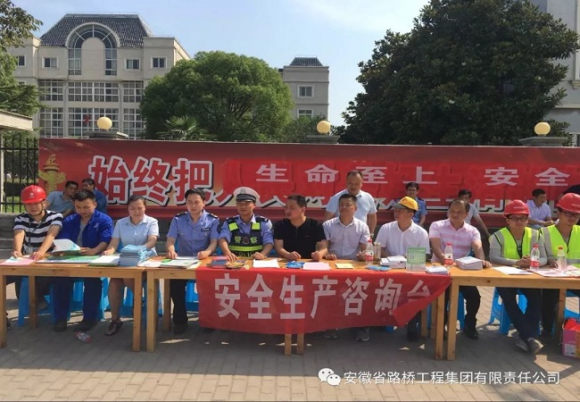 正值第17個全國“安全生產月”,6月15日上午,S215路基01標、路面標項目部聯合新杭鎮政府、公安消防大隊、交警隊、食品藥品監督管理局、國家電網、宣燃天然氣有限公司共同舉辦2018年“安全生產月”集中宣傳咨詢日活動。