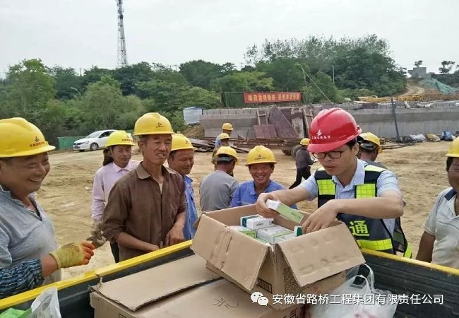 為了慰問在高溫條件下依然堅守崗位的施工一線員工,6月17日下午,項目部組織開展“夏日送清涼”活動,為堅守崗位的一線拼搏者們送上綠豆、人丹、清涼油和藿香正氣水等防暑降溫用品,帶去夏日的絲絲涼爽。