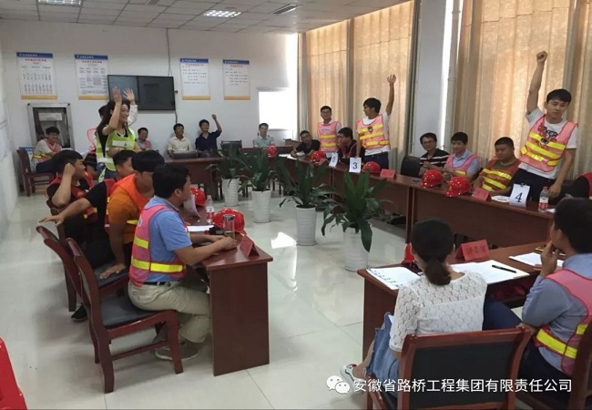 在隨后進行的安全知識競答環(huán)節(jié),來自各個項目的6個代表隊伍參加競答。比賽開始前,各隊伍表現(xiàn)出舍我其誰的姿態(tài),隨后信心滿滿的開始了答題之旅。隨著進入緊張、激烈的搶答題環(huán)節(jié),各隊伍開始拿出看家本領(lǐng),你爭我奪,你追我趕。經(jīng)過激烈的角逐,最終蓬萊路項目摘得桂冠,九龍路項目和利辛?xí)惩椖棵械诙?、第三?