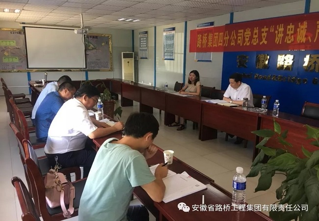 7月18日下午,四分公司黨總支在廣德S215-02標項目會議室召開“講忠誠、嚴紀律、立政德”專題織生活會。會議由黨總支書記朱大俊主持,四分公司黨總支全體委員參加。公司黨委書記、董事長、總經理盛明宏,黨委工作與人力資源部副主任徐慧玲到會指導。