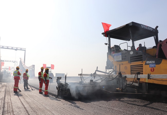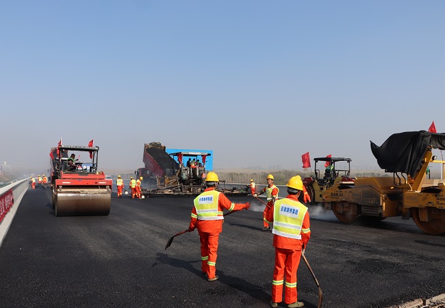 寒冬伊始,朔風凜冽。在合安改擴建01標路面項目部的施工現場卻是另一番景象,11月23日早晨,在多臺攤鋪機、壓路機等重型機械的協同作戰下,在一片機器協奏曲和動員指揮聲中,在瀝青攤鋪渲染的熱氣上,合安路面項目開始了中派河大橋左幅中面層Ac-20攤鋪,這是繼11月2日中派河大橋合攏后又一重要工程節點,為完成年底大橋通車邁出了更快的步伐。