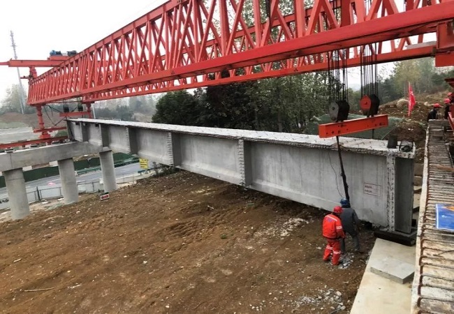 “落、落、落,左移一公分,落、落、落……好!成功了!”。11月21日,在現場負責人利索準確的指揮聲中,丙鋪路項目玉龍路大橋首片40米T梁平穩、安全、準確地安裝在支座上,成功架設。