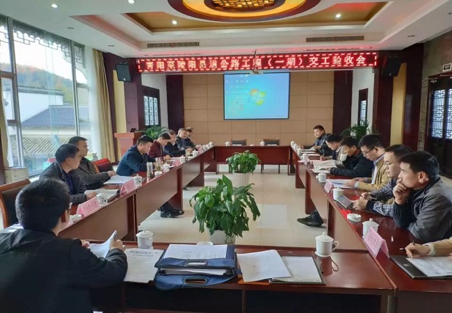 下午兩點三十分青陽至陵陽縣道公路工程(一期)交工驗收會議在青陽縣蓮峰云海會議室舉行。交工驗收委員會在聽取設計、監理、施工等各參建單位的總結匯報,查閱驗收檢測報告、評定資料、竣工資料后,經交工驗收委員會合議,形成如下結論:本項目“工程建設管理有序,質量可靠、安全平穩”,項目合同段質量評定得分97.48分,工程質量等級評定為“合格”,順利通過交工驗收。