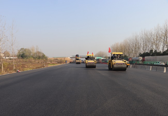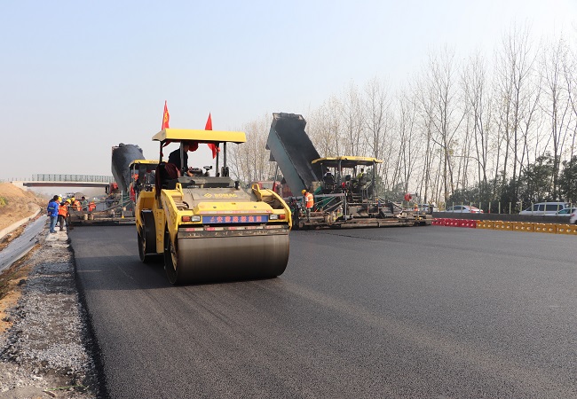 27日早,合巢蕪被濃霧籠罩,早晨10點,K99+100-K100+500瀝青上面層開始攤鋪,轟鳴的機器聲驅散了天空中的霧氣,也一掃所有人內心的隱憂,截至晚上18時,已完成1.5公里的SMA-13瀝青混合料的攤鋪,這預示著蕪合改擴建03標第2次導改段的路面施工即將結束。
