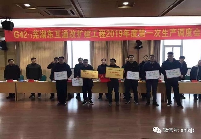 3月1日蕪湖互通改擴工程項目辦召開2019年第一次生產調度會。會上對優秀項目部及優秀個人給予表彰,我公司被授予“優秀施工單位”稱號,曹軍同志被授予“安全生產優秀管理者”稱號。