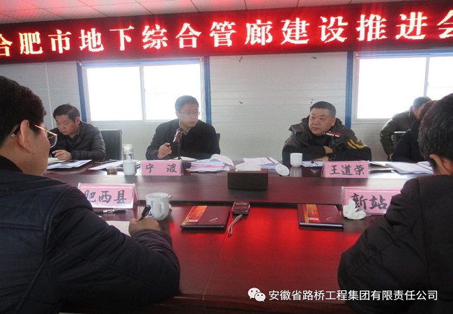 合肥市地下綜合管廊建設推進會由市委副秘書長王道榮主持,肥西縣、高新區、新站區三個管廊試點項目先后就項目進展、管線入廊情況及下步工作安排進行了匯報。燃氣、供水、熱力等各管線單位就管線入廊計劃進行了匯報。市建委、財政局、物價局分別對管廊推進情況提出了建議及要求。