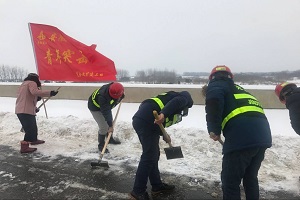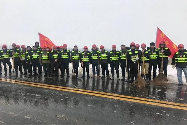 項(xiàng)目部負(fù)責(zé)人說(shuō):“困難時(shí)刻,黨員就要沖在第一線”。經(jīng)過(guò)數(shù)個(gè)小時(shí)的奮戰(zhàn),終于將沿線積雪清除,確保行人車(chē)輛行駛安全。漫天風(fēng)雪中,隨處可見(jiàn)迎風(fēng)飄揚(yáng)的鮮紅旗幟,沖鋒在前的共產(chǎn)黨員,奮戰(zhàn)在一線的青年員工,造就了最靚麗的一道風(fēng)景線。