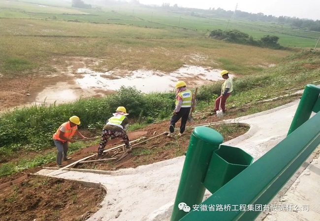 目前,蕪合高速改擴建三標項目以瀝青施工為重點,接線拱護骨架、錐坡空心六棱塊安裝、邊溝修復、箱涵接線施工、綠化施工等附屬工程同步進行。項目全員以安全施工為核心,趕進度、抓質量,全身心投入施工大干熱潮中。