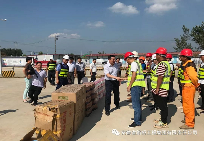 7月25日下午,望江縣委書記李躍云攜縣總工會一行前往G347望江PPP項目,向酷暑中堅守一線的安徽路橋集團員工表示慰問。