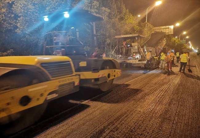 9月26日晚,月臺路項目南區市政道路維修工程施工現場燈火通明,一片繁忙景象。為減少施工對交通的影響,錯開交通高峰期,項目部員工開啟夜間工作模式,最大限度保障市民安全便捷出行。