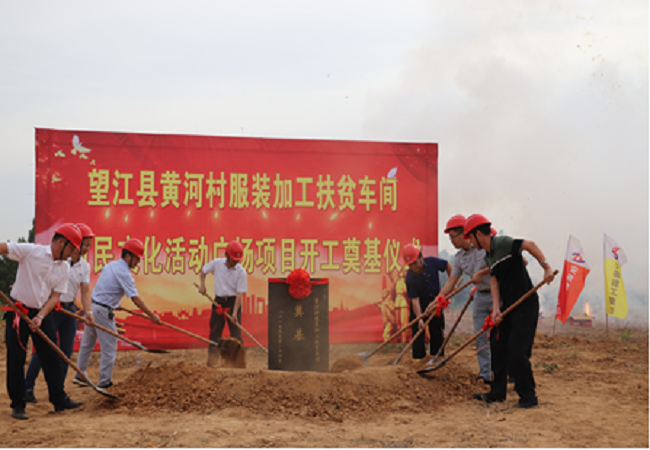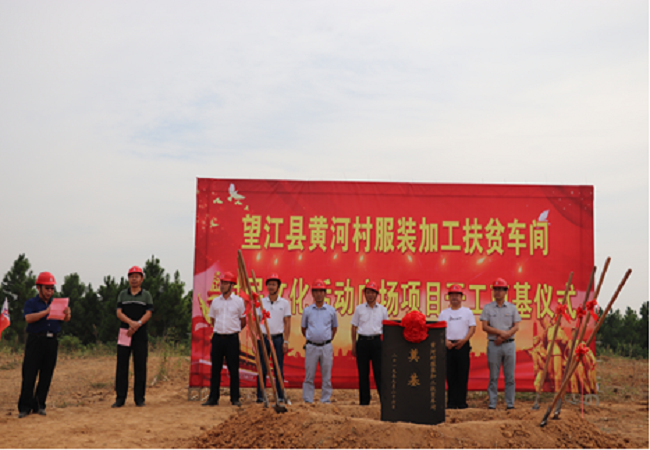 9月26日上午,公司承建的望江縣黃河村服裝加工扶貧車間及村民文化活動廣場項目開工奠基儀式在黃河村舉行。望江縣人大常委會副主任王進、望江縣扶貧辦副主任謝暉、高士鎮鎮長劉正虎、安徽路橋集團二分公司黨總支書記、副總經理劉峰等領導出席奠基儀式。