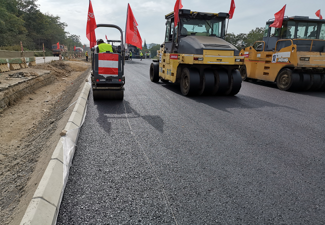 11月5日,G346項目公路改建段K59+900-K60+900右幅瀝青下面層順利完成攤鋪,此節點目標的完成標志著項目公路段全部完成,為公路段最后一段老路破除反挖處理提供了作業面。