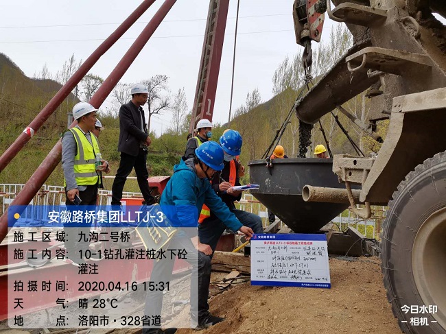 4月16日下午16:46分,經過2個多小時緊張而忙碌的工作,由公司承建的欒盧高速公路三標九溝二號橋10#-1樁基順利澆筑完成。