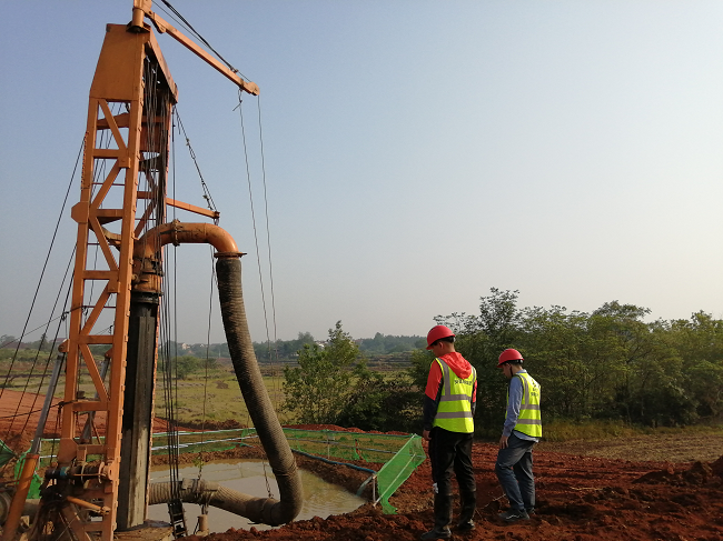 為確保整個樁基施工過程安全、有序,開鉆前期,項目部制定安全可靠的技術方案和應急預案,并對施工技術人員、施工隊伍和機械操作人員進行了詳細的崗前技術交底和安全技術交底。從鉆機就位開鉆起,即組織員工堅守施工現場,確保每個工序落實責任人、監控人。