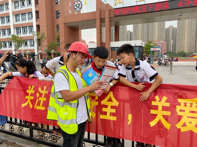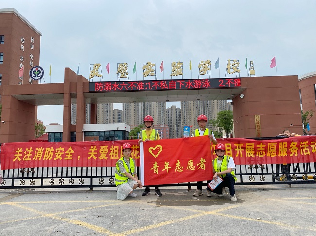 2020年6月29日,靈璧縣城市路網PPP項目團支部組織青年團員們在靈璧縣實驗小學門口開展了“關注消防安全 關愛祖國花朵”為主題的志愿服務活動。