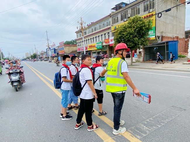 過程中,志愿者們護送放學的學生安全過馬路,學生們興奮地一邊說著“謝謝”一邊揮手告別,看到這些祖國的花朵們臉上綻放的燦爛笑容,青年團員們真切感受到身為共青團員和路橋集團一份子的驕傲和自豪。