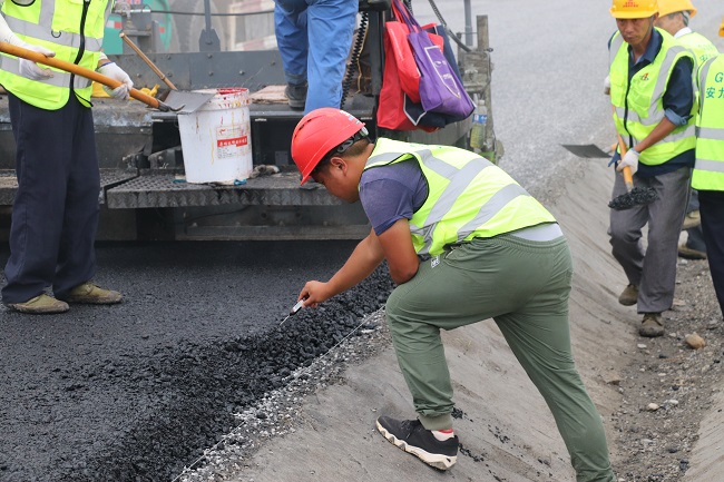 在施工過程中,現(xiàn)場(chǎng)技術(shù)員及時(shí)查看攤鋪厚度,試驗(yàn)員實(shí)時(shí)查看瀝青攤鋪溫度,并對(duì)瀝青混合料的拌合、運(yùn)輸、攤鋪、碾壓、檢測(cè)等各個(gè)施工環(huán)節(jié)嚴(yán)格把關(guān),確保此次作業(yè)攤鋪質(zhì)量。