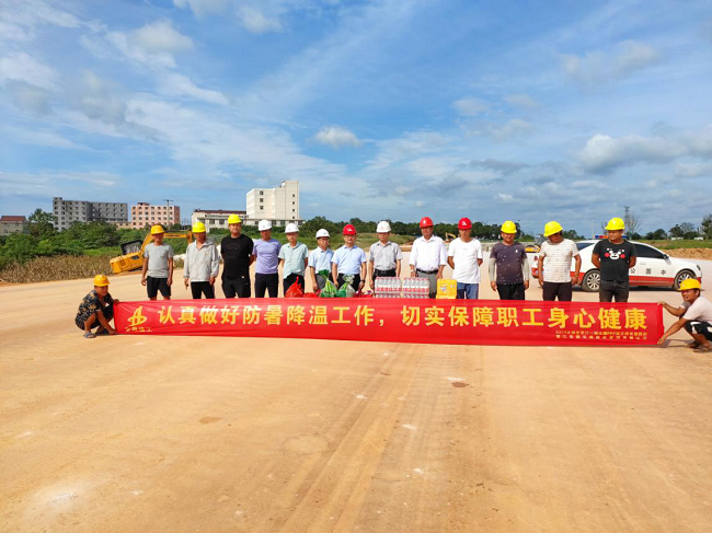 為做好防暑降溫工作,切實保障一線員工身心健康,望江縣指揮部赴S211PPP項目開展“送清涼”活動。8月6日上午,指揮部人員一行深入現場,看望慰問一線員工,為奮戰在一線的員工送去綠豆、白糖、西瓜、藿香正氣水等慰問品。