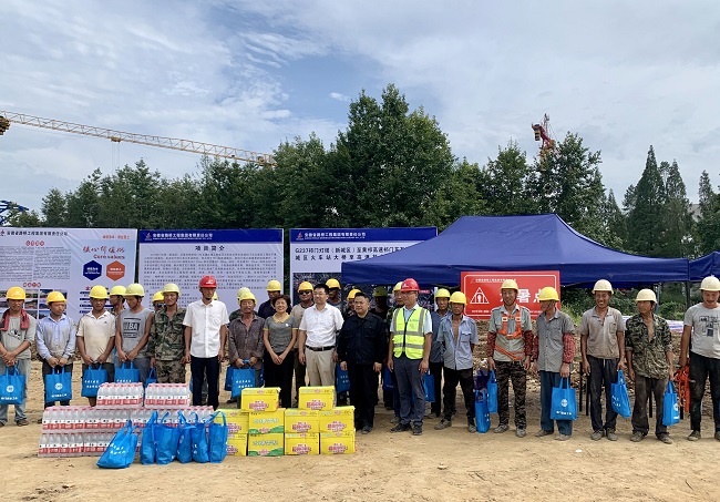 時值盛夏酷暑之際,為切實保障一線職工們的身體健康、合理組織施工建設、加快施工進度、保證施工安全,祁門縣縣長熊言松、縣政協主席方小紅、祁山鎮黨委書記程宏書一行來到安徽路橋集團祁門縣東線入城段改建工程項目施工現場進行“送清涼”慰問活動,為炎炎夏日奮戰在一線的工人送來了“清涼”和問候。