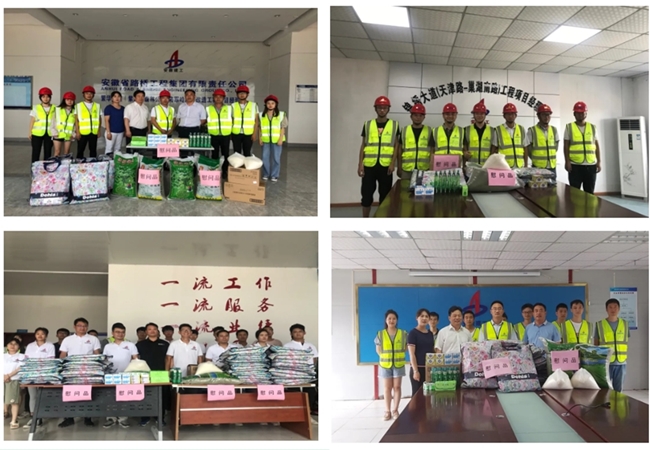 近日來,高溫天氣再度來襲,為切實做好一線職工夏季安全生產和防暑降溫工作,一分公司工會開展“送清涼”活動。8月3日-13日,一分公司領導班子帶隊赴繁華大道、無岳高速、利辛PPP、玉龍路、G329、錦繡大道、滁州恒興路等項目慰問奮戰在施工一線的職工,把清涼送到職工手中。