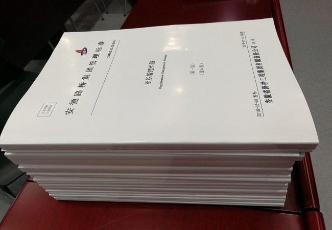 安徽路橋集團標準化管理體系以規范管理為中心,堅持專業化管理,堅持經理責任制,做到組織標準化、流程標準化、表單標準化。整個管理體系包括“制度、辦法、手冊”三個層級,涵蓋從公司總部到項目部各層面。下一步,公司會把標準化成果運用到信息化建中,通過信息化固化流程、表單,在運行過程中不斷優化管理體系。