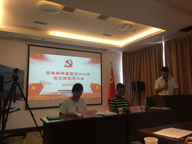2020年8月18日下午,安徽路橋集團五分公司黨支部召開黨員大會,會議由五分公司黨支部書記、總經理代杰主持,分公司全體黨員、發展對象及入黨積極分子共計17人參加會議,公司黨委委員、紀委書記王勝利應邀出席大會并講話。