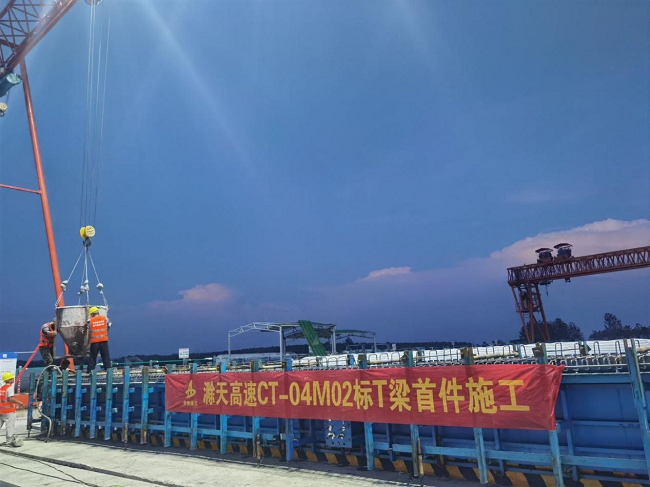 8月26日,滁天高速CT-04M02標首片預制T梁順利完成澆筑,拉開了預制T梁規模化施工的序幕。