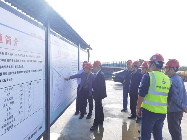 10月9日下午,合肥市交通運輸局總工程師韓光輝一行赴明巢高速合肥段路基03標項目調研。合肥交投控股董事長黃惠民、總經理李昊、副總經理查明華等參加調研。