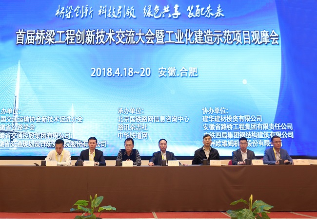 4月19日上午8點(diǎn)半,由中國(guó)交通運(yùn)輸協(xié)會(huì)新技術(shù)促進(jìn)分會(huì)聯(lián)合安徽省公路學(xué)會(huì)等四家單位共同主辦,安徽省路橋工程集團(tuán)有限責(zé)任公司等單位協(xié)辦,北京國(guó)鐵路網(wǎng)信息咨詢中心、路訊雜志社、中華鐵道網(wǎng)承辦的“首屆橋梁工程創(chuàng)新技術(shù)交流大會(huì)暨工業(yè)化建造示范項(xiàng)目觀摩會(huì)”在合肥隆重開幕。