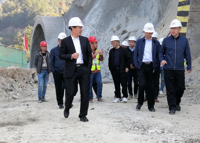 調研中,操太林一行深入施工現場,實地查看了項目施工進度及年度目標完成情況,仔細聽取了項目負責人關于工程進度、安全管理、質量管控、環保作業等方面的匯報。操太林對項目在全線率先完成首樁澆筑、首板二襯澆筑的工作給予了充分肯定。