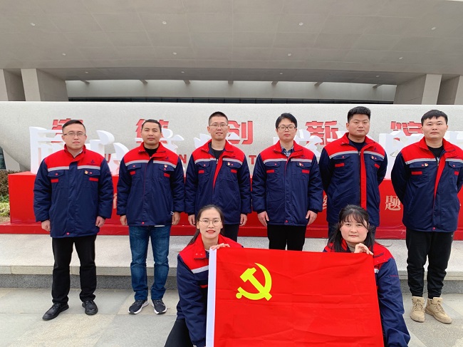 參觀結束后,檢測公司母體黨員在黨總支委員張鵬同志的帶領下,重溫了入黨誓詞。