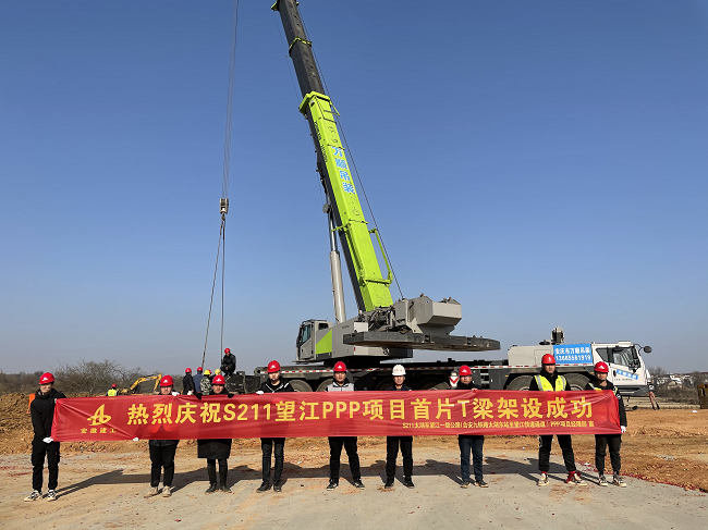 1月12日下午,S211PPP項目首片預制T梁架設成功,標志著S211PPP項目橋梁架設施工正式拉開序幕。
