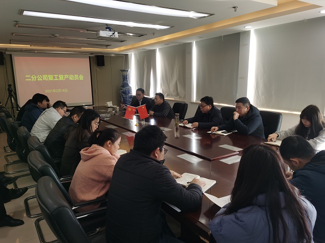 2月18日,二分公司召開節后復工復產動員會,領導班子成員、部分項目負責人和機關全體員工參會。會議提出三點要求,一是做好收心歸位,以飽滿的熱情投入工作;二是強化責任擔當,充分認識分公司今年面臨的形勢任務;三是狠抓節后復工各項目安全生產工作,盡快掀起施工大干。