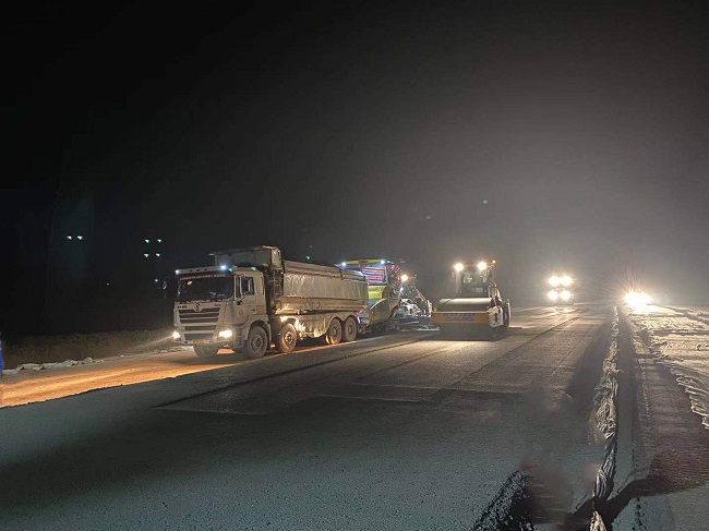 春意盎然,陽光明媚。G347和S211項目鎖定春暖花開的大好時節,項目管理人員和操作人員全部到崗,4臺攤鋪機、4臺單鋼輪壓路機、2臺膠輪壓路機,夜以繼日,積極投入到項目生產之中,迅速進入大干狀態,打響新年第一仗。