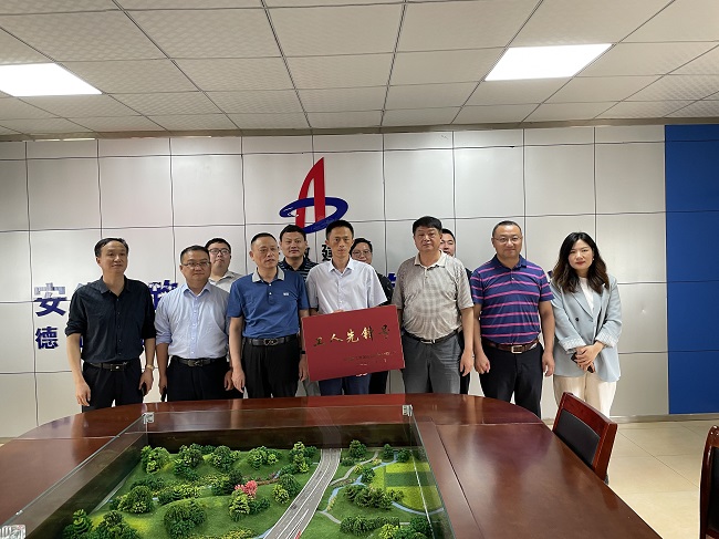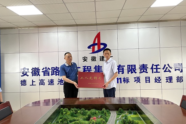 會后,驗收組一行視察了項目部駐地,查閱了宣傳展板,并赴鋼板組合梁架設施工現場對工程形象進度、安全文明施工等進行現場調研。驗收組對項目創建“工人先鋒號”以來取得的成績給予充分肯定,現場授予池祁高速11標項目安徽建工控股有限公司“工人先鋒號”榮譽。