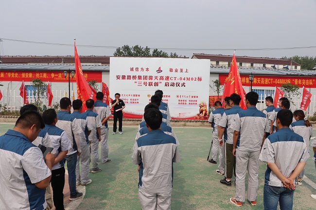 為深入開展黨史學(xué)習(xí)教育,全面掀起“學(xué)黨史、保安康、搶工期、爭一流”勞動競賽熱潮,以優(yōu)異成績獻(xiàn)禮建黨100周年。6月9日,二分公司滁天高速04標(biāo)舉辦“三號聯(lián)創(chuàng)”啟動儀式。公司副總工程師、工會副主席陸在銀,公司紀(jì)檢監(jiān)察室主任、黨委工作部負(fù)責(zé)人徐慧玲、二分公司黨總支書記劉峰及滁天高速04標(biāo)全體項(xiàng)目職工參加儀式。